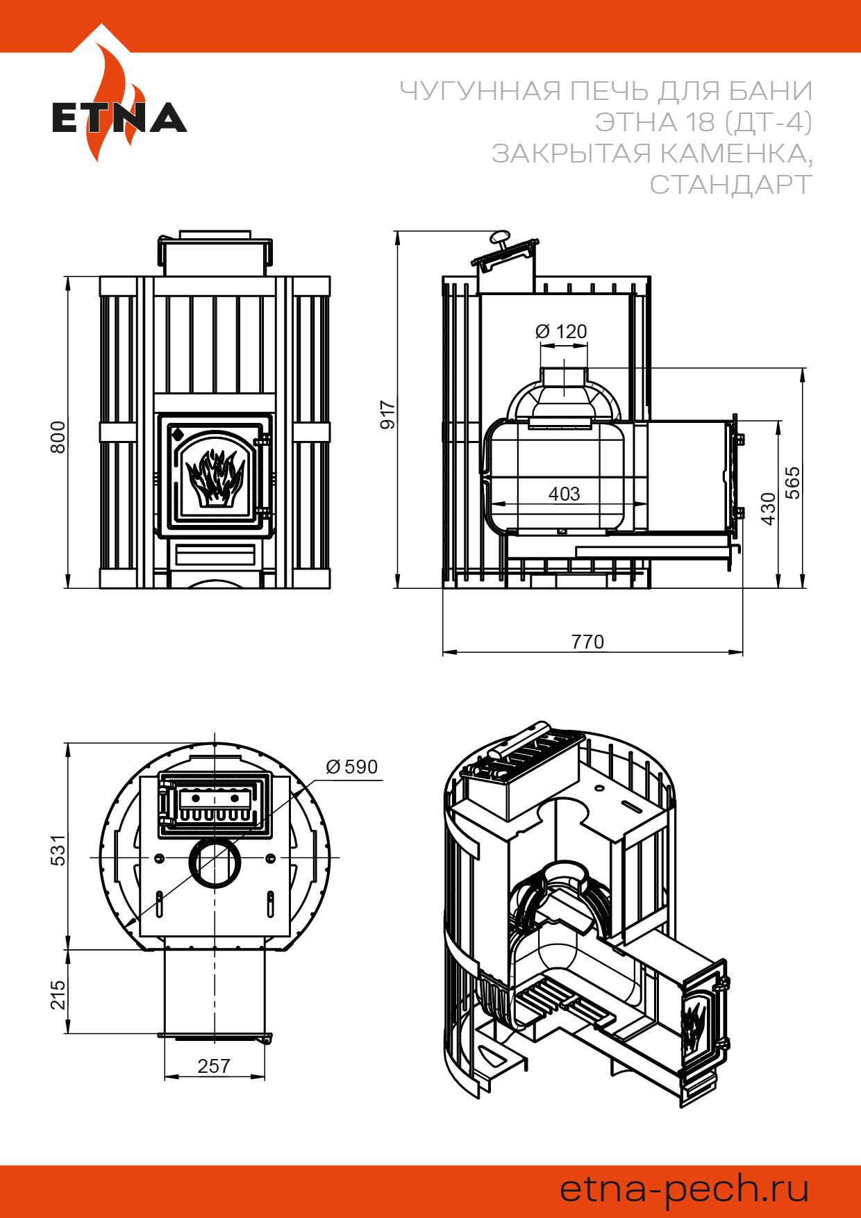 Договор заключается в момент оплаты Покупателем товара ТОЛЬКО в ОФЛАЙН-МАГАЗИНЕ. Делая предварительный заказ, Покупатель заверяет, что ознакомился и согласен с Политикой компании, она ему ясна и понятна.Печь для бани ЭТНА 18 (ДТ-4) Стандарт Закрытая каменка