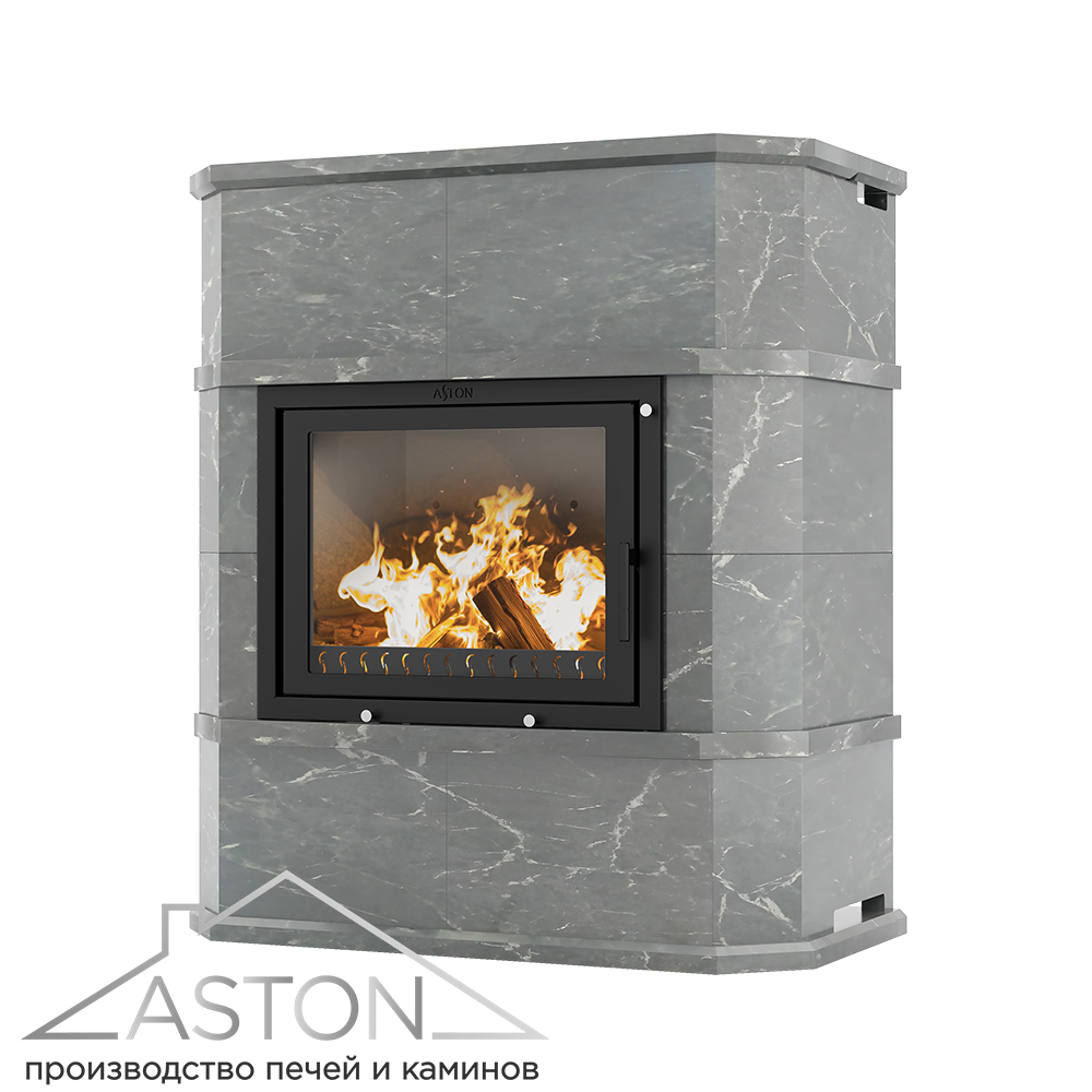 Камины облицованы натуральным камнем (на выбор: Пироксенит/Талькохлорит/Амфиболит) толщиной 40мм, который обладает невероятными теплоаккумулирующими свойствами. По своей теплопроводности и теплоёмкости этот камень в два с половиной раза превосходит привычный кирпич. Натуральный камень очень эффективно нагревается и долго держит тепло, постепенно передавая его в помещение.