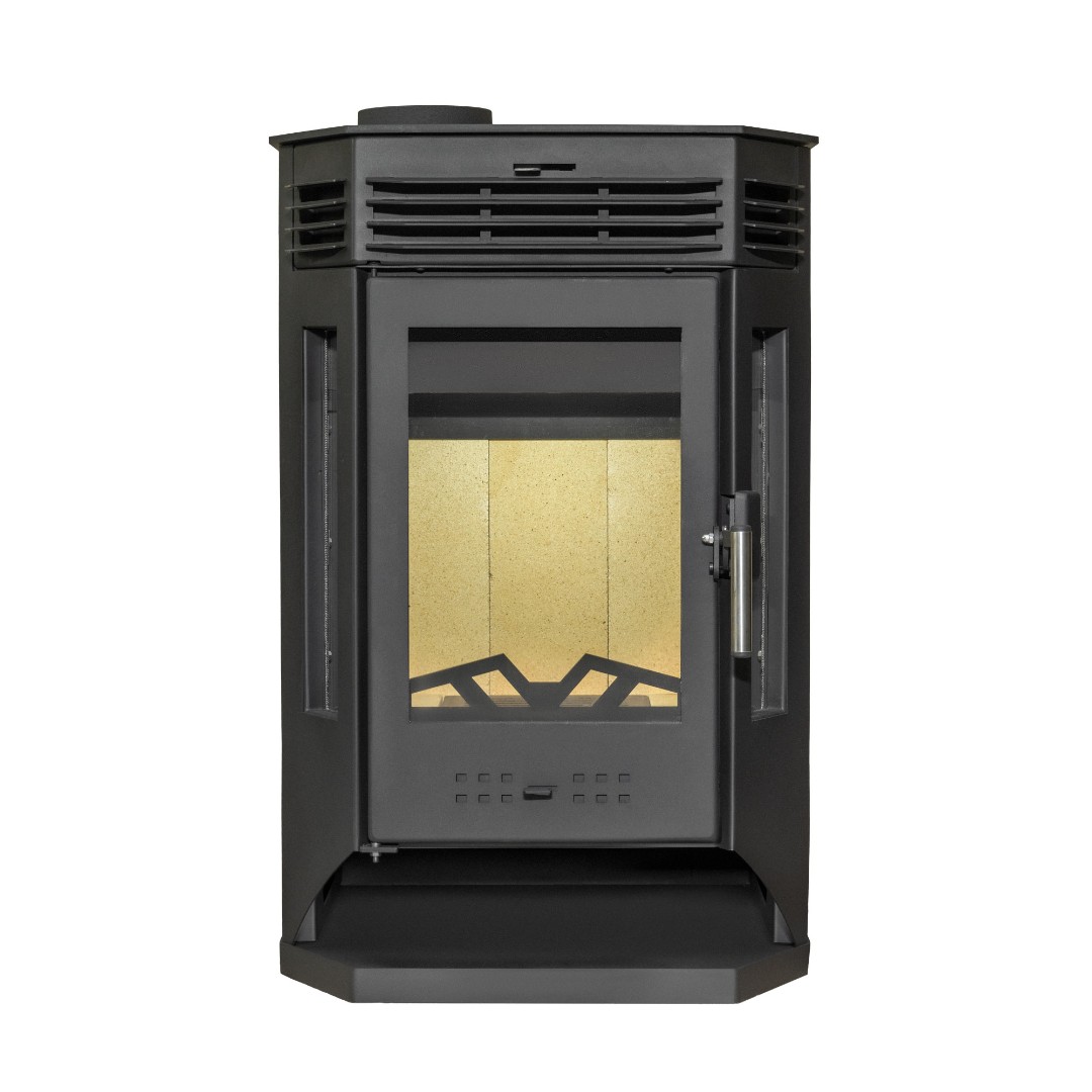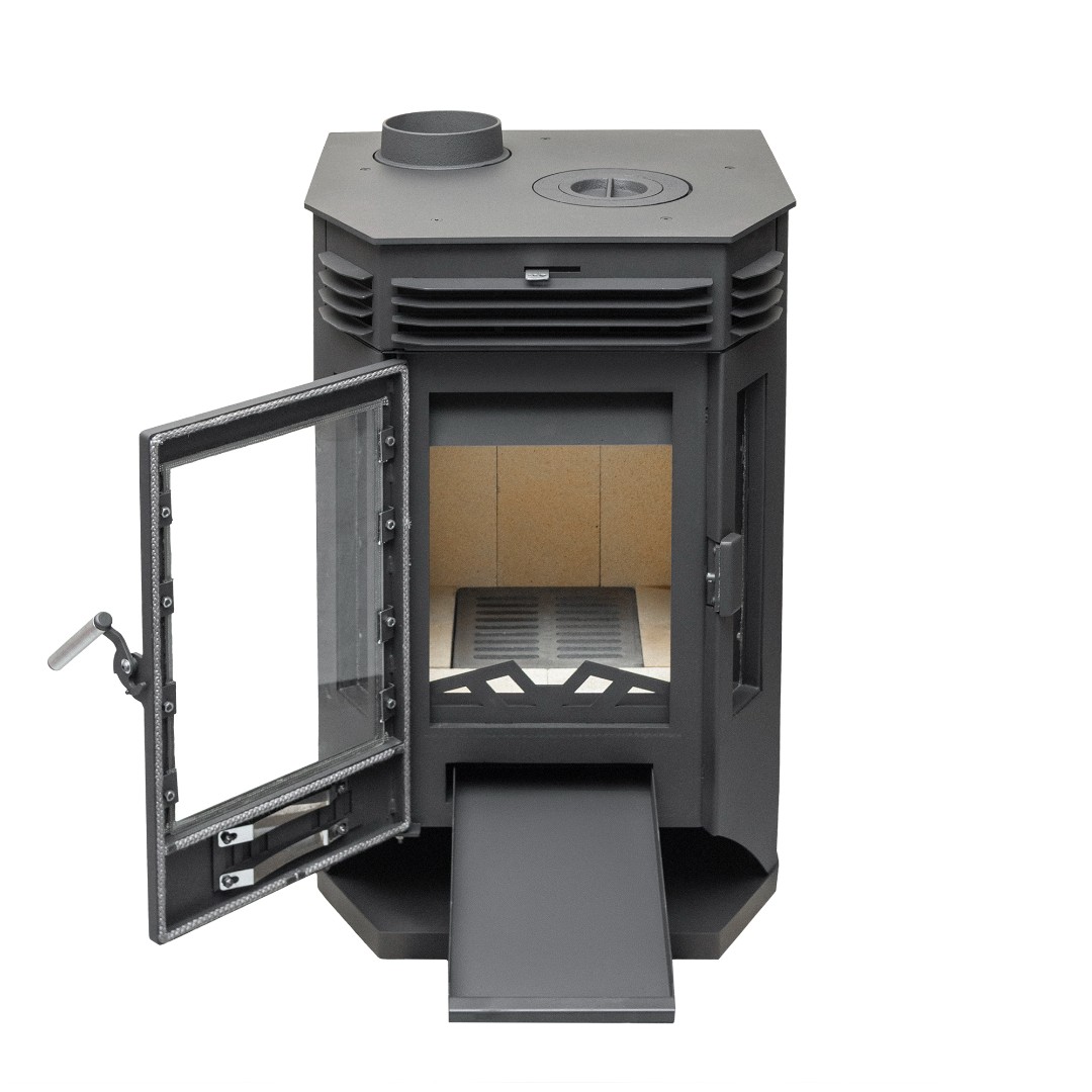 Благодаря номинальной мощности 9 кВт и высокому КПД не менее 75% печь способна эффективно отопить просторное помещение, быстро создавая комфортную температуру. Прочный стальной корпус и массивная 8-миллиметровая верхняя панель гарантируют долговечность и устойчивость к высоким температурам.