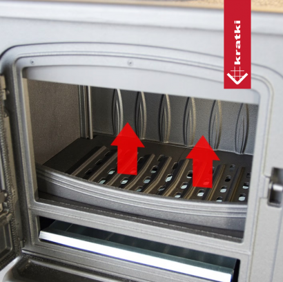 Выдвижной зольный ящик и съемный чугунный колосник облегчают удаление золы и чистку.