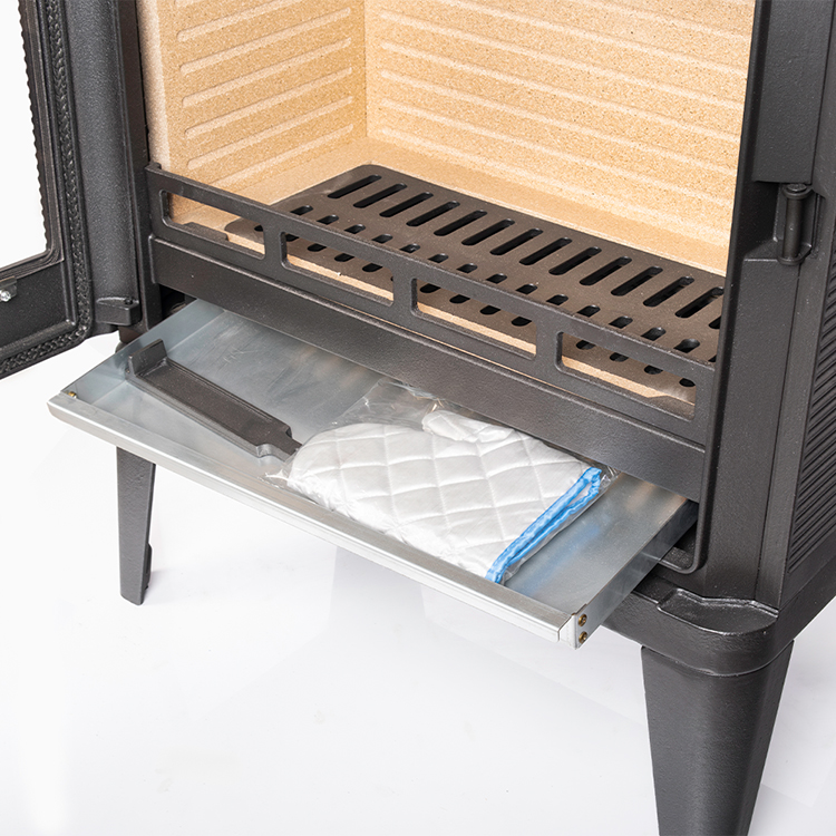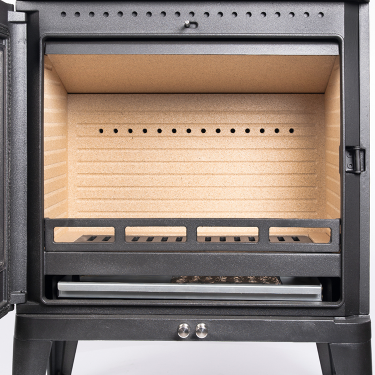 Изнутри топка защищена отбойниками из чугуна, а на дне расположен поворотный колосник с механизмом сброса золы в зольный ящик.