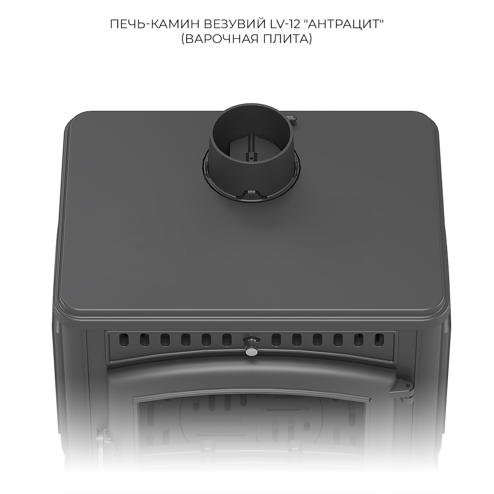 Печь-камин Везувий LV-12 "Антрацит" изготовлена из качественного жаростойкого чугуна (ГОСТ 1412-85) с толщиной стенок 6-8 мм.
