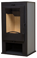 Компактная пристенная печь. Верхняя панель оборудована чугунной варочной плитой. Кроме обогрева помещения можно разогреть пищу или вскипятить чайник. Идеально подходит для обогрева небольшого загородного домика площадью 30-60 м2. Плоская дверка высотой 330 мм. Размер поленьев 25 -27 см. В печи предусмотрена система "чистое стекло" и система «длительное горение».