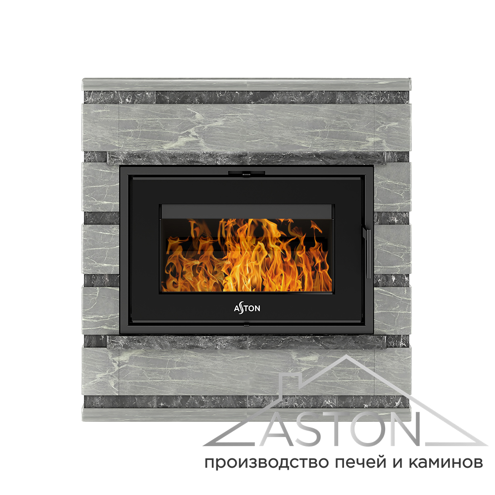 Камин комплектуется топкой серии АСТОН (ASTON) Сенатор (Senator). Топочная камера изготовлена из особо прочной котловой стали 09Г2С. Размер топочной дверки: 870х550 мм.