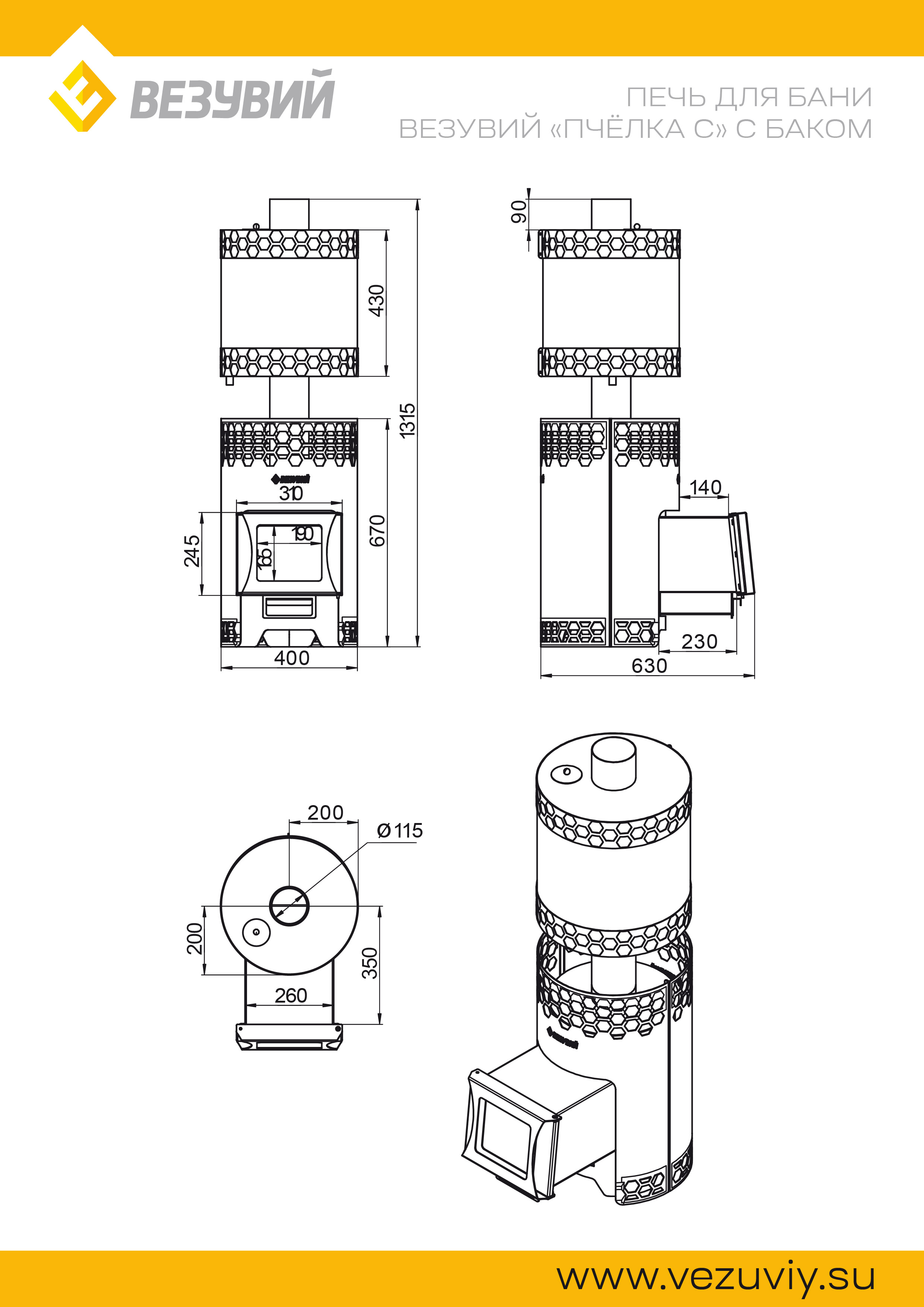 Договор заключается в момент оплаты Покупателем товара ТОЛЬКО в ОФЛАЙН-МАГАЗИНЕ. Делая предварительный заказ, Покупатель заверяет, что ознакомился и согласен с Политикой компании, она ему ясна и понятна.Печь для бани Везувий "Пчёлка" с баком