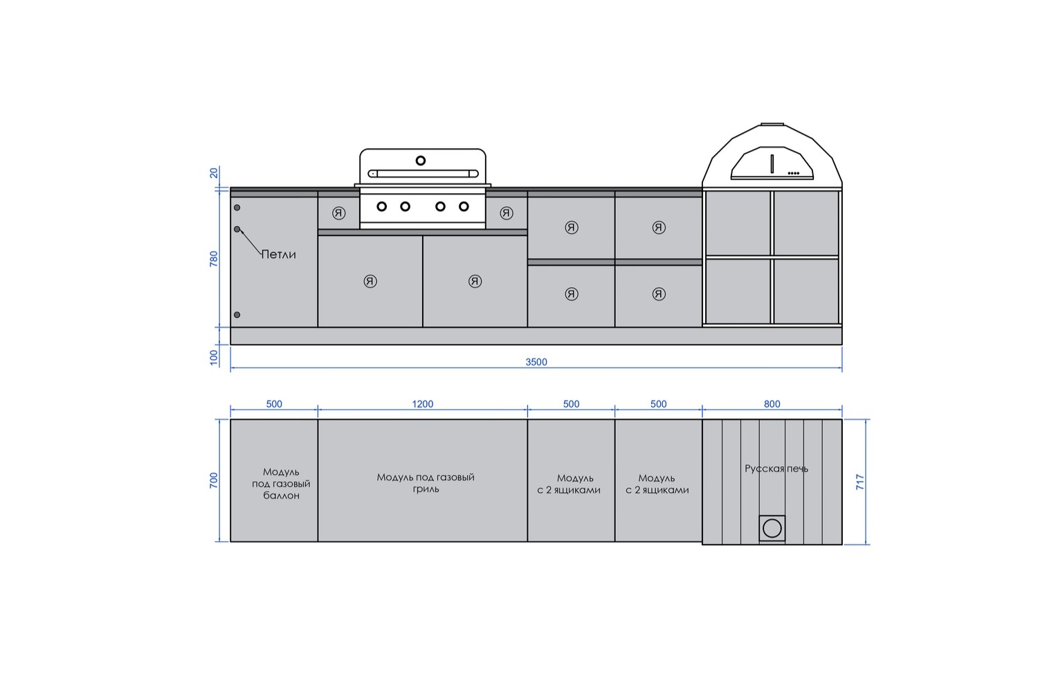 Договор заключается в момент оплаты Покупателем товара ТОЛЬКО в ОФЛАЙН-МАГАЗИНЕ. Делая предварительный заказ, Покупатель заверяет, что ознакомился и согласен с Политикой компании, она ему ясна и понятна.Кухня ASTOV BBQ № 19 (ширина 3500 мм)