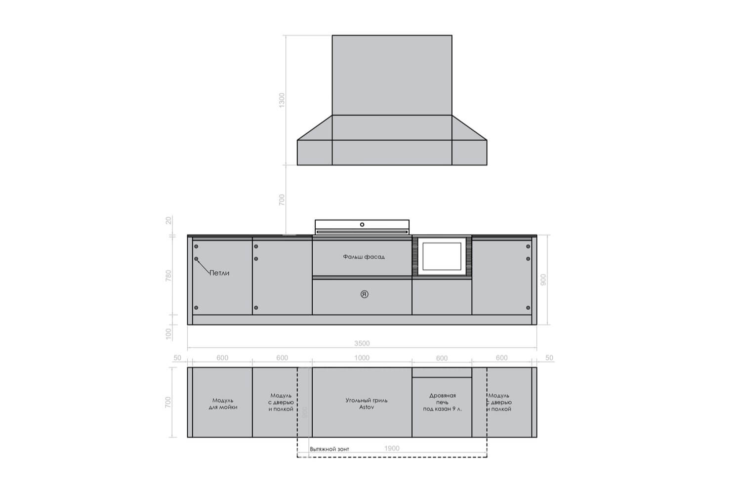 Договор заключается в момент оплаты Покупателем товара ТОЛЬКО в ОФЛАЙН-МАГАЗИНЕ. Делая предварительный заказ, Покупатель заверяет, что ознакомился и согласен с Политикой компании, она ему ясна и понятна.Кухня ASTOV BBQ № 5 (ширина 3500 мм)