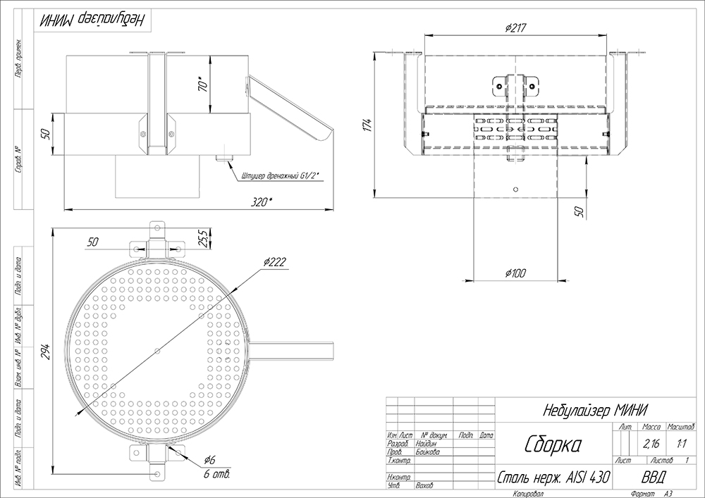 Устройство состоит из двух частей: - «съемная нержавеющая чаща» - «труба-воздуховод».
